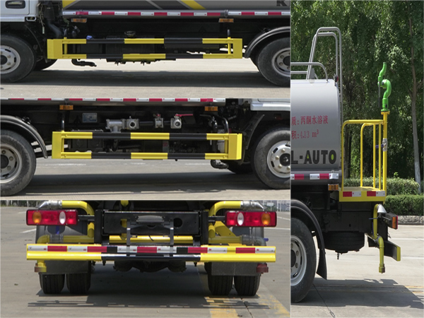 | 1.该车主要用于园林绿化,专用装置为喷洒总成;罐体总容量4.13立方米,罐体有效容积3.93立方米,罐体尺寸长×宽×高(mm):3400×1600×1100,2.侧/后防护材料Q235B,侧防护螺栓连接,后防护焊接,后防护截面尺寸(mm):120×50,离地高(mm):400mm.;ABS型号及生产厂家:3550D-1010C2000/东风福利企业公司;仅采用3300轴距改装.选装腰冲样式,选装油箱、尿素罐、蓄电池、储气罐安装位置,选装后部平台管道样式,选装前置鸭子嘴形式,选装水炮样式 |