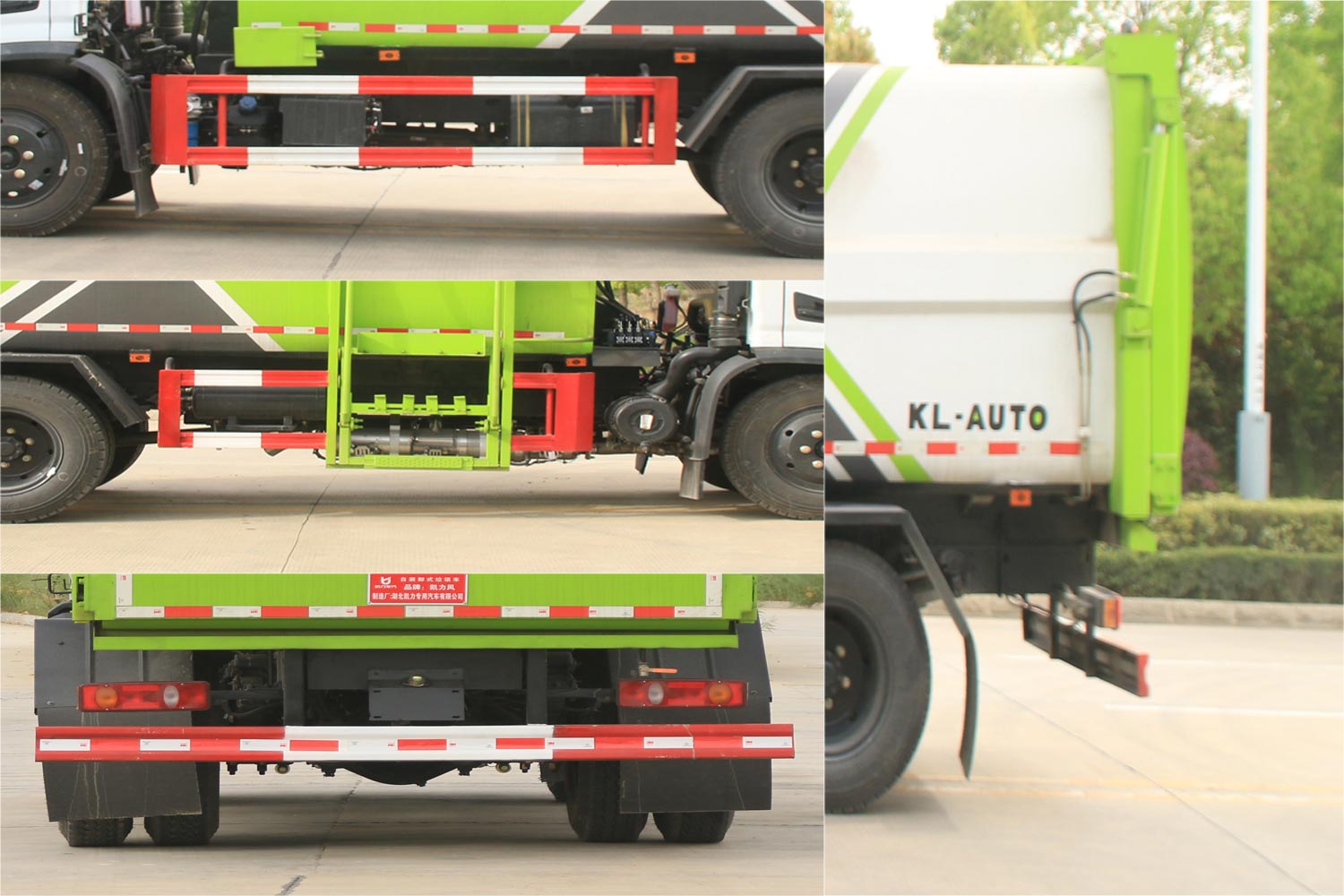 | 侧防护材料为Q235B,侧防护与车辆的连接方式为螺栓连接;后防护材料为Q235B,后防护为焊接,后防护断面尺寸(mm);150×50;离地高度:450mm; ABS型号及生产厂家为:3631010-C2000/东科克诺尔商用车制动系统(十堰)有限公司,J ABS/焦作博瑞克控制技术有限公司;该车型选装直接供电ETC车载装置.发动机对应油耗值分别为 (L/100km); YCY30165-60/19.7, D25TCIF1/20.1选用 3800mm轴距改装,专用功能及装置:专用装置为垃圾箱和提升机结构,主要用于垃圾收集转运选装箱体外形样式;随底盘选装驾驶室选装底盘附件布置位置,选装箱体侧部及后部变化外观,外形尺寸/前悬/后悬对应关系:6690/1200/1690,6710/1220/1690,6740/1250/1690,6770/1280/1690 |